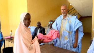 سلم النائب د.محمد الغيث ولد الحضرامي النائب عن مقاطعة النعمة ، صباح اليوم بالمدرسة رقم 3 بالنعمة مايقارب 1000 قطعة من الزي المدرسي الموحد لصالح التلاميذ المنحدرين من الاوساط الهشة ب8 مدارس سبع منها ببلدية النعمة وأخرى ريفية .